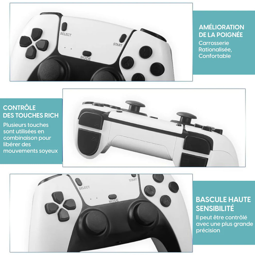 Partagez le plaisir avec vos proches grâce aux manettes sans fil 2,4 GHz, parfaites pour des sessions à deux, sans aucun câble encombrant.