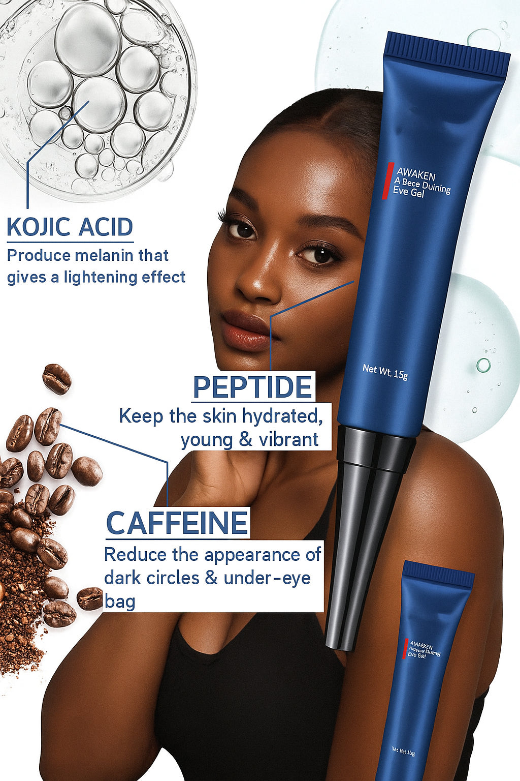 1. Appliquez sur le contour de l'œil propre et sec. Utilisez-le tous les jours pour un meilleur résultat..